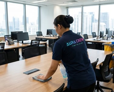 Laat uw onderneming stralen met de kracht van perfectie. Zoekt u een schoonmaakpartner die verder kijkt dan de oppervlakte? Bij Aura Crew combineren we vakkundigheid met passie.