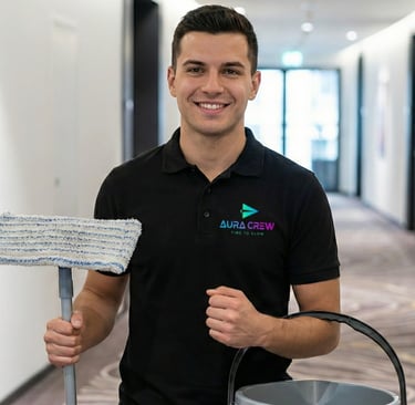 "Schoonmaken is een vak, gastvrijheid is een kunst. Bij Aura Crew beheersen we beide."