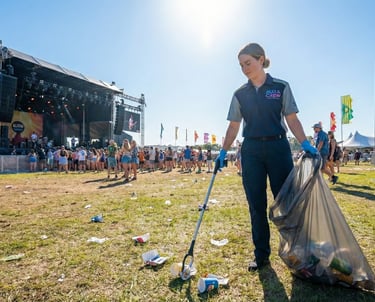 Opleveringsschoonmaak: Na afloop van het festival leveren wij de locatie weer brandschoon op aan de grondeigenaar of gemeente.